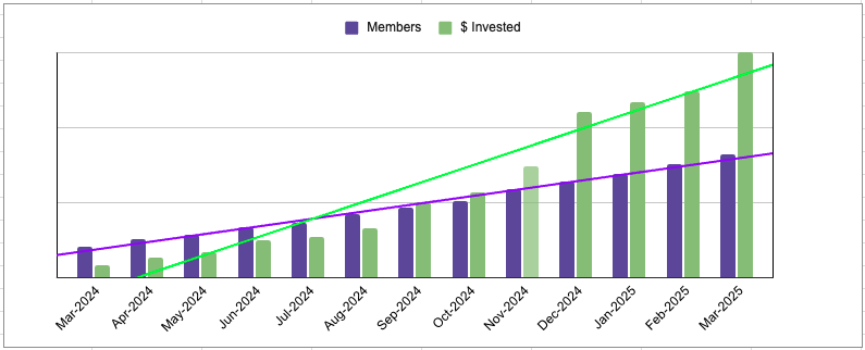 We hit a delicious $315K invested on the platform for the month and topped $1.8M AUA (assets under advisement) since we started a year ago. 🎉