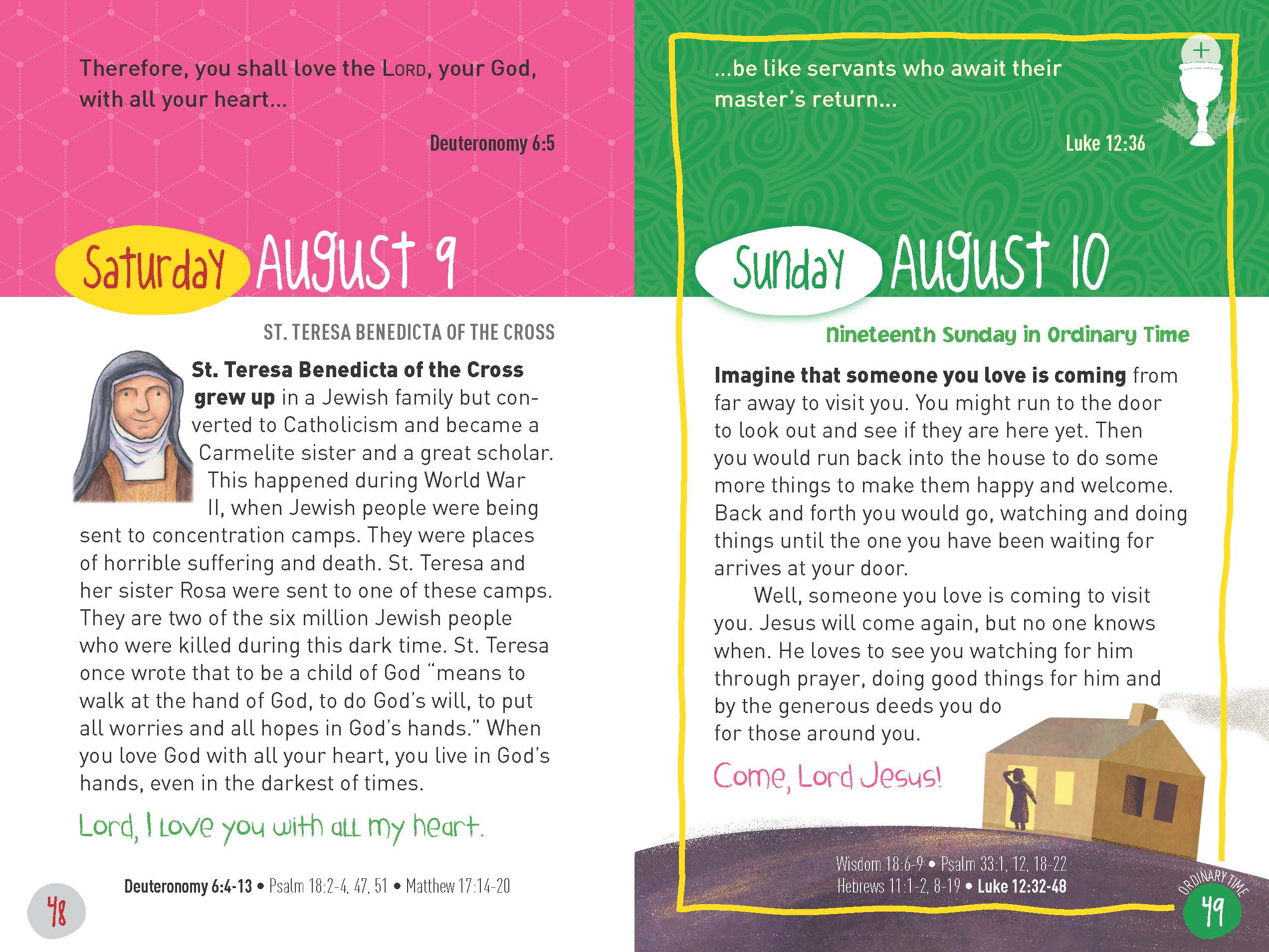 The Living Faith Kids Calendar is perfect for helping children learn about the Church seasons and explore their faith. Our monthly calendar lists feast days, a word of the month and simple questions to help children pay attention to the Sunday Gospel.
