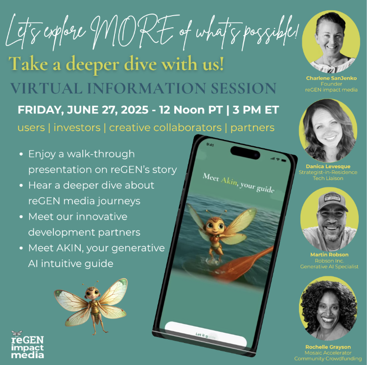 What if your screen time sparked your next breakthrough? We hold the incredible power of media in our hands, yet most of what we consume leaves us scattered or depleted. reGEN's vision is to deliver a curated content solution that transforms screen time into soul time. Learn more about backing their campaign at their upcoming info session.